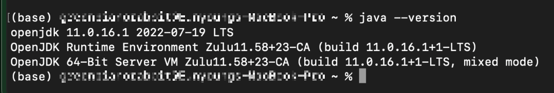 - 터미널 창에 java --version을 입력해서 아래와 같이 JDK 버전 정보가 잘 뜨는지 확인합니다.