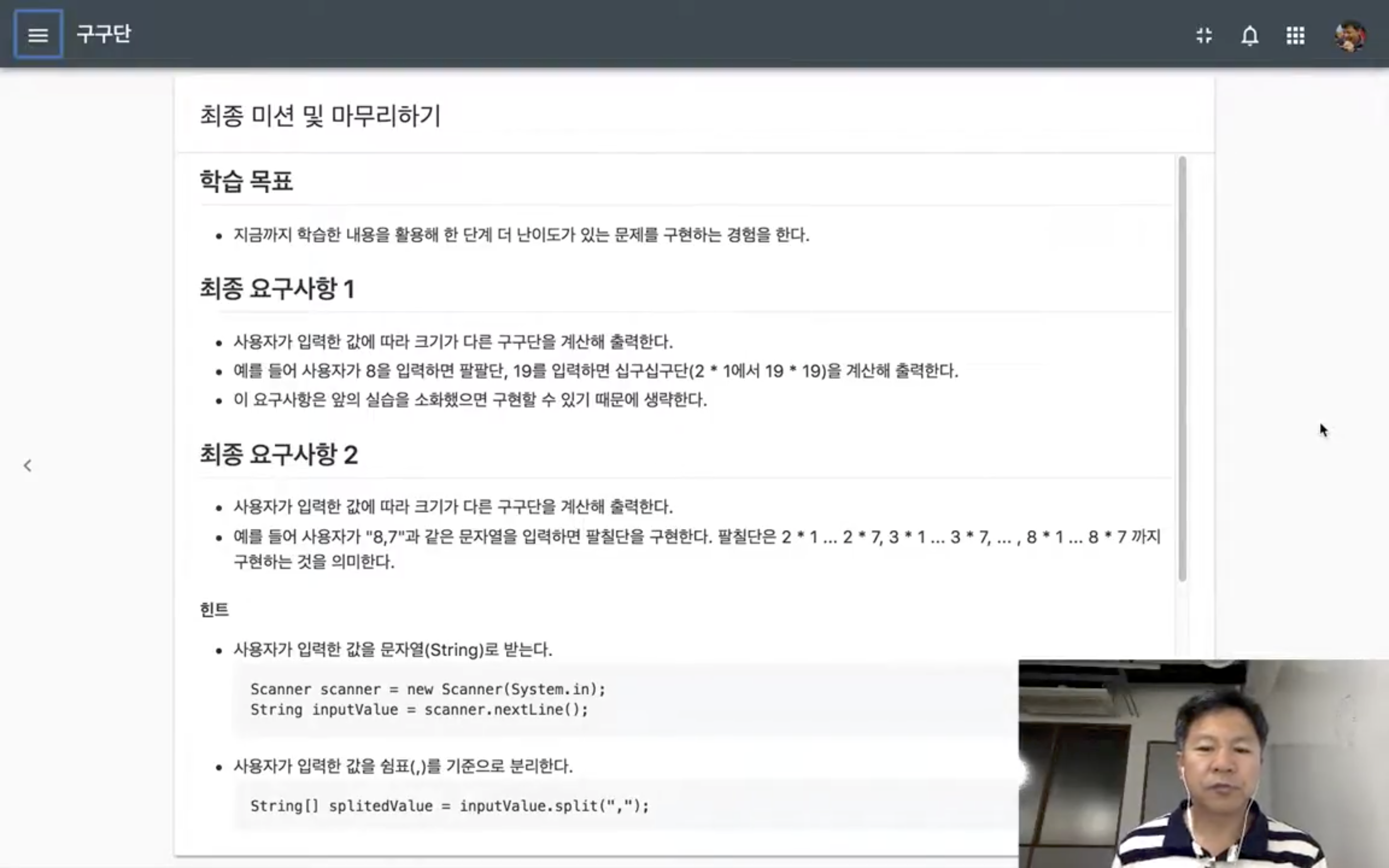 '메소드를 활용해서 구구단 구현하기'의 다음 단계 과제였다.