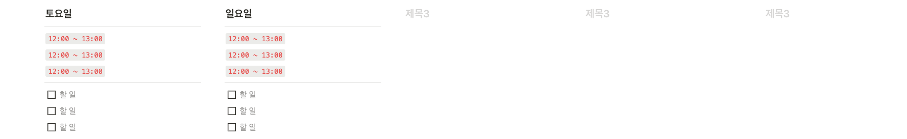 e.g. 주차별 일정 관리