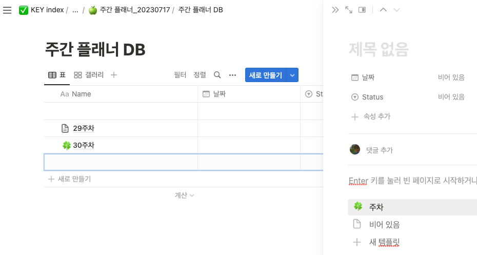 4. 문서에 컬럼 만들기