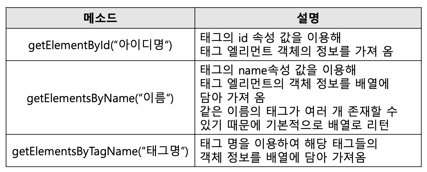 🌱 id, 태그명, name 속성 값, class명으로 요소 가져오기