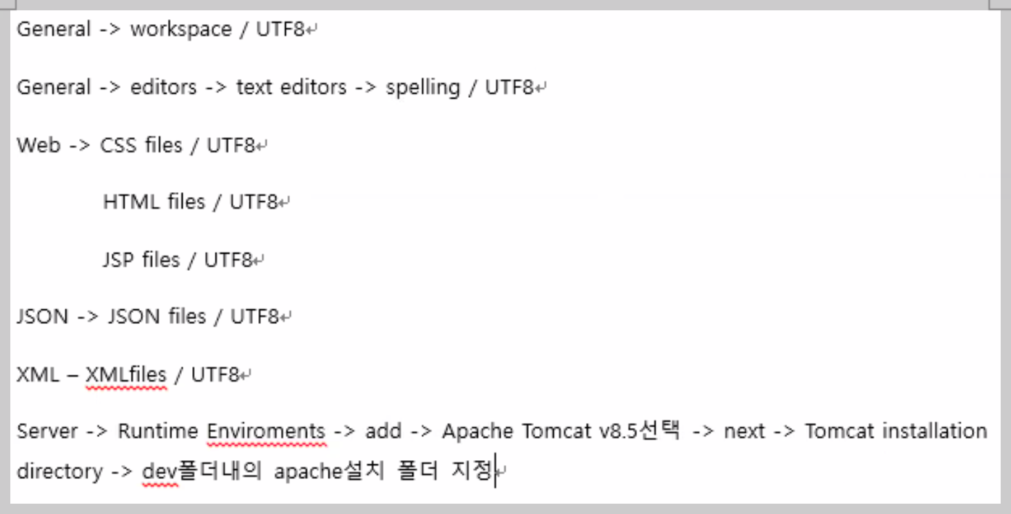 2c) encoding 설정 및 서버 runTime environments 세팅
