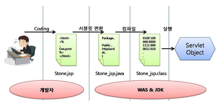 JSP(Java Server Page): html 내에 Java 코드를 넣음 + 단, 그 JSP 응답 화면에서 필요로 하는 데이터를 request 객체에 담아서 Servlet으로부터 보내줘야 함 → 응답은 JSP가 함